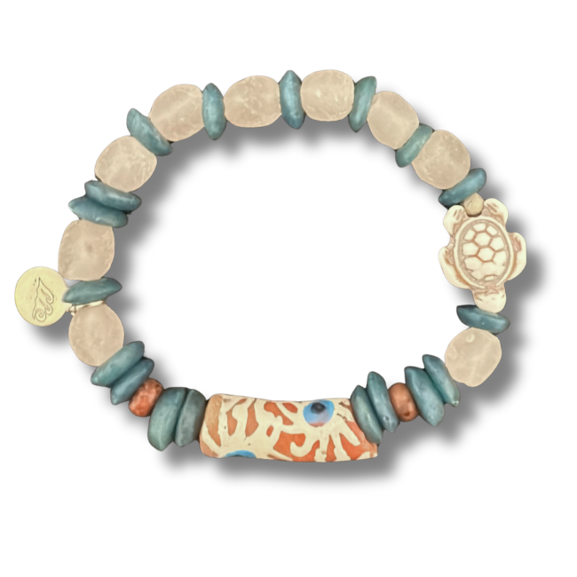 Sea Turtle Bracelet with Krobo African Feature Bead